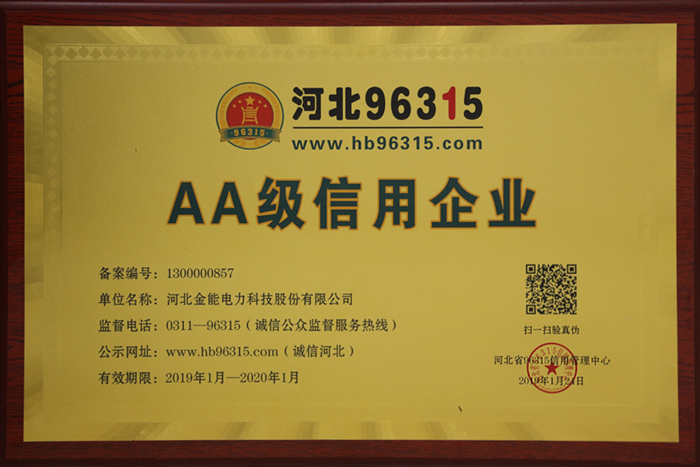 在市場蕭條的大背景下,金能電力能夠逆流直上,不僅信用等級再次提升,而且率先斬獲由河北省96315信用管理中心頒發的"信用等級證",是非常難能可貴的。